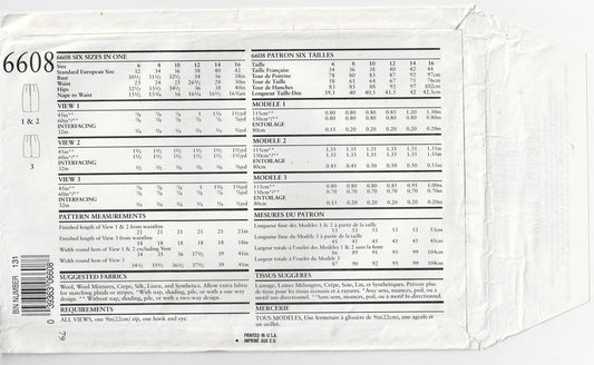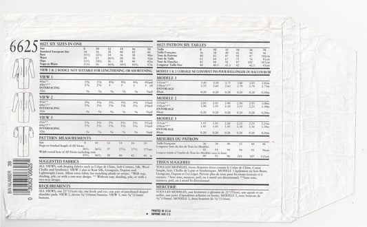 New Look 6632 Womens EASY Loose Fitting Casual Tops 1990s Vintage Sewing Pattern Size 8 - 18 UNCUT Factory Folded