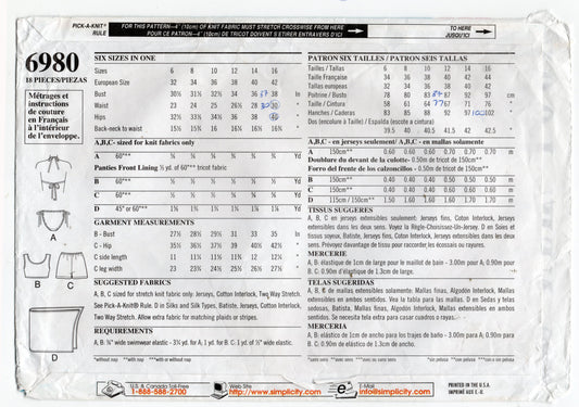 New Look 6980 Womens EASY Stretch Bikini Crop Top Shorts & Sarong Wrap Out Of Print Sewing Pattern Size 6 - 16
