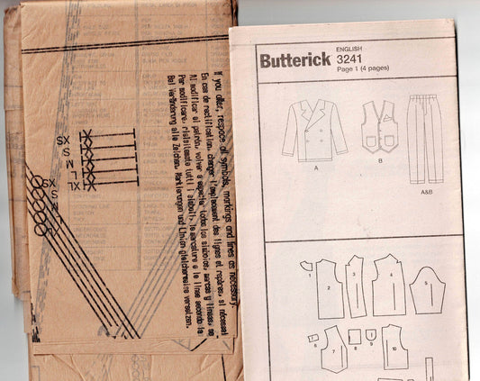 Butterick 3241 Mens Gangster Costume Jacket Vest & Pants Out Of Print Sewing Pattern Size XS - XL UNCUT Factory Folded