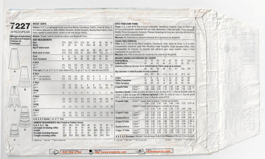 Simplicity 7227 Womens Plain or Ruffled Elastic Waist Skirts Out Of Print Sewing Pattern Size 4 - 10 UNCUT Factory Folded