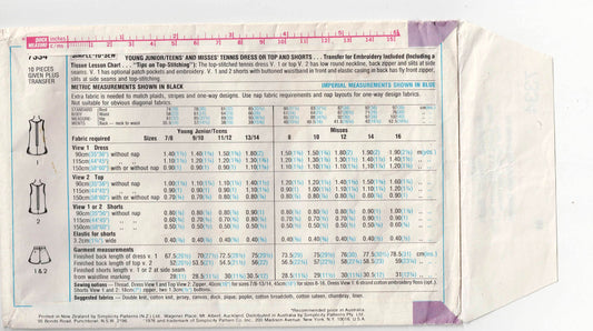 Simplicity 7334 Womens Tennis Dress Top & Shorts with Embroidery Transfer 1970s Vintage Sewing Pattern Size 14 Bust 36 inches