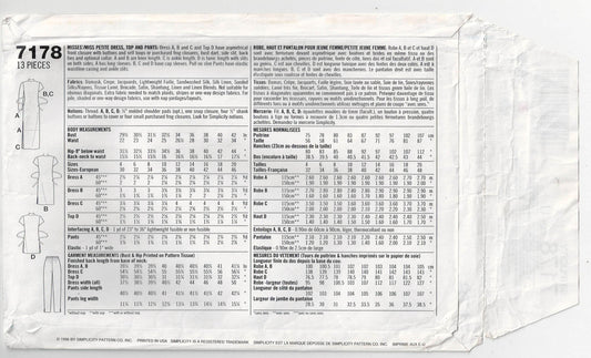 Simplicity 7178 Womens Cheongsam Style Asymmetric Dress Top & Pants 1990s Vintage Sewing Pattern Sizes 16 - 20 UNCUT Factory Folded