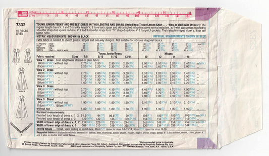 Simplicity 7332 Womens Empire Waisted Sundress Maxi Dress & Shawl 1970s Vintage Sewing Pattern Size 14 Bust 36 inches