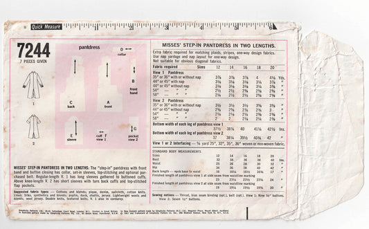 Simplicity 7244 Womens Step in Pantdress / Jumpsuit 1960s Vintage Sewing Pattern Size 12 Bust 32 inches