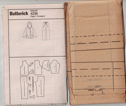 Butterick 4236 ELLEN TRACY Womens Casual Hoodie Jacket & Pants Out Of Print Sewing Pattern Size 18 - 22 UNCUT Factory Folded