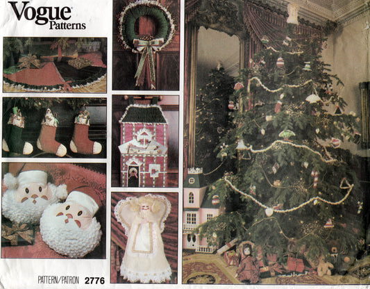 Vogue 2776 Christmas Decoration Pack Santa Pillows Stockings Wreath Angel etc 1980s Vintage Sewing Pattern UNCUT Factory Folded