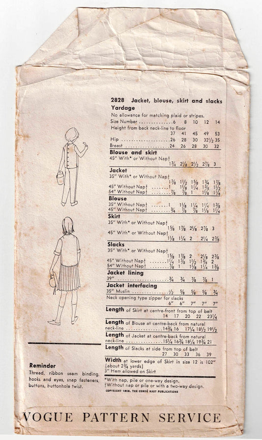 Vogue 2828 Girls Jacket Blouse Skirt & Pants 1960s Vintage Sewing Pattern Size 8