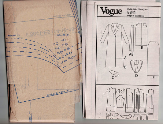Vogue Wardrobe 8841 Womens Jacket Belt Detachable Fur Collar & Skirt Out of Print Paper Sewing Pattern Sizes 14 - 22 UNCUT Factory Folded