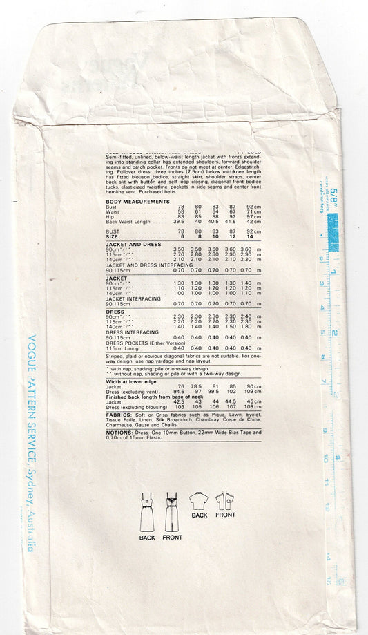 Vogue 7817 Womens Ruffled Front Dress & Blazer 1980s Vintage Sewing Pattern Size 10 Bust 32.5 inches UNCUT Factory Folded