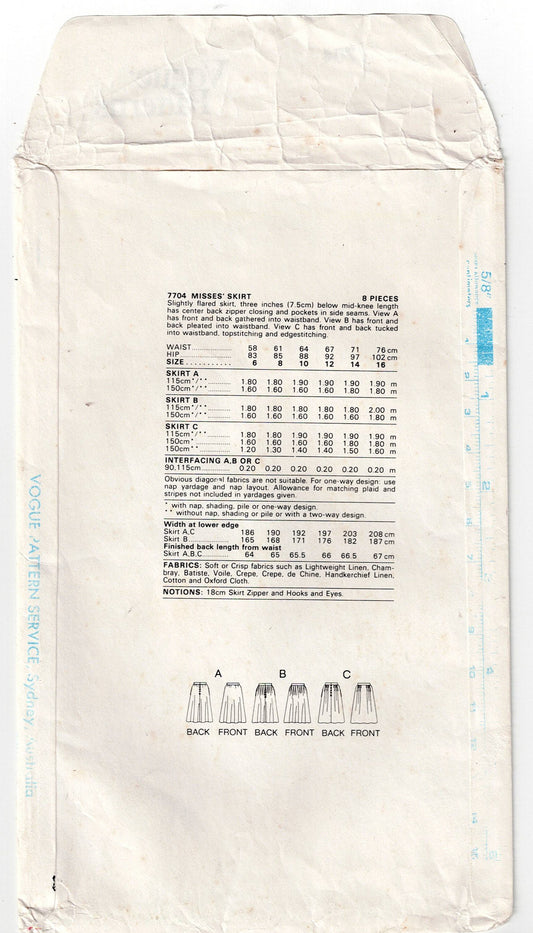 Vogue 7704 Womens Gathered or Pleated Skirts with Pockets 1970s Vintage Sewing Pattern Size 10 Waist 25 inches
