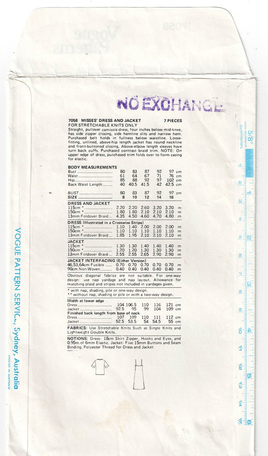 Vogue 7058 Womens Stretch Knit Sundress & Short Sleeved Jacket 1970s Vintage Sewing Pattern Size 12 Bust 34 Inches