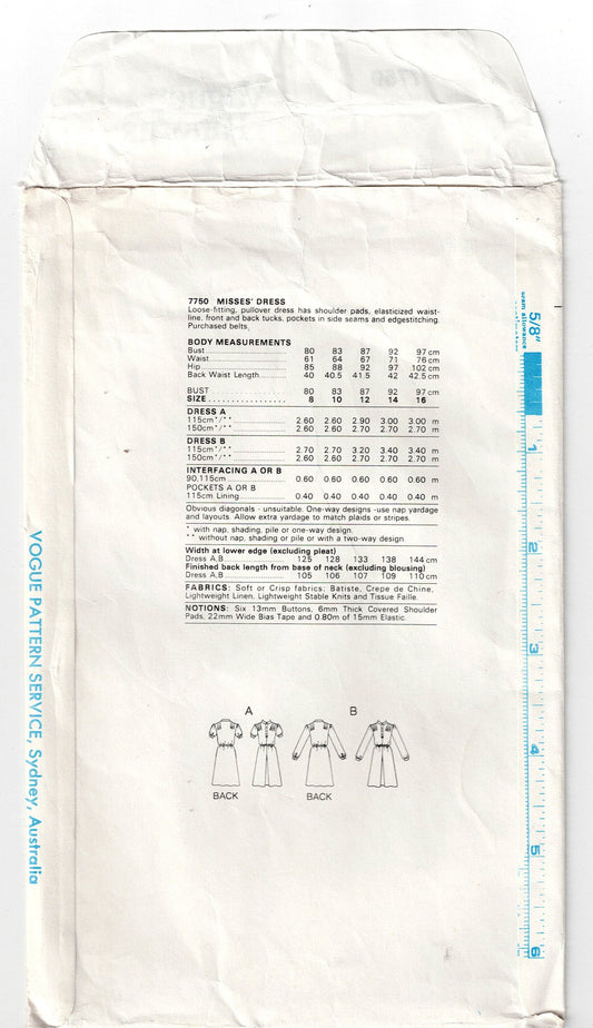 Vogue 7750 Womens Puff Sleeved Dress 1970s Vintage Sewing Pattern Size 10 Bust 32.5 inches UNCUT Factory Folded