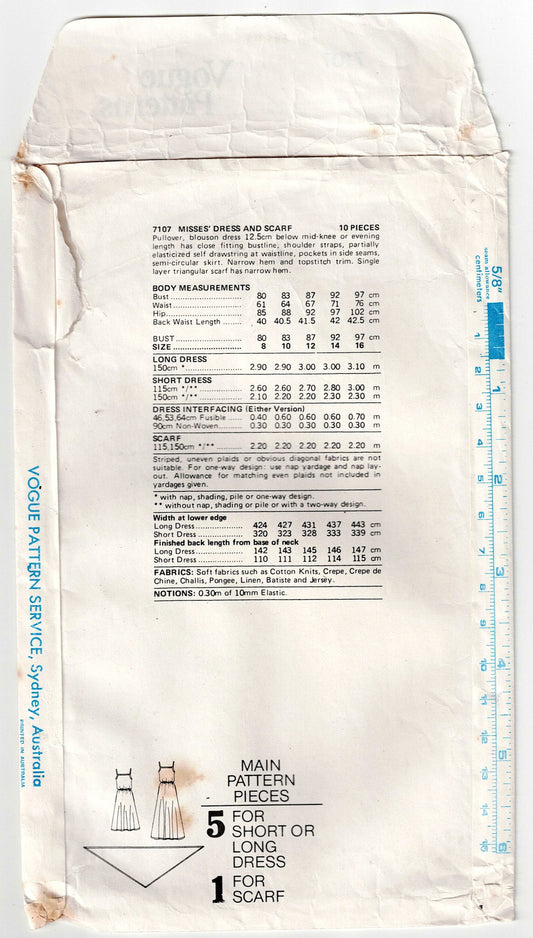 Vogue 7107 Womens Evening Dress & Scarf 1970s Vintage Sewing Pattern Size 14 Bust 36 inches
