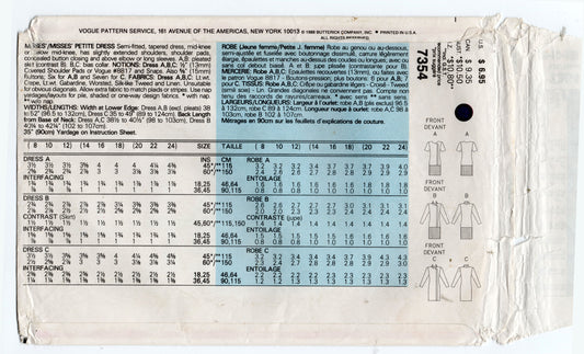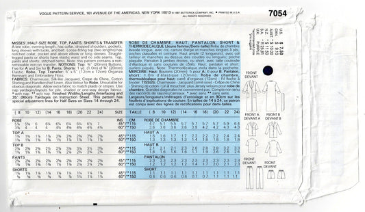 Vogue 7054 Womens Robe & Pajamas with Monogram Transfers 1980s Vintage Sewing Pattern Size 14 & 16