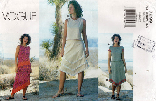 Vogue 7299 Womens Asymmetric Tops & Skirts Out Of Print Sewing Pattern Size 8 - 12 UNCUT Factory Folded