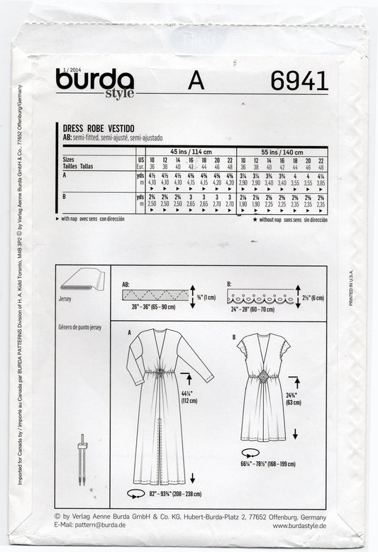 Burda 6941 Womens Stretch Gathered Waist Dress Out Of Print Sewing Pattern Sizes 10 - 22 UNCUT Factory Folded