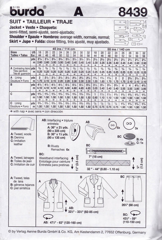 Burda 8439 Womens Skirt & Coat 1990s Vintage Sewing Pattern Sizes 18 - 32 UNCUT Factory Folded