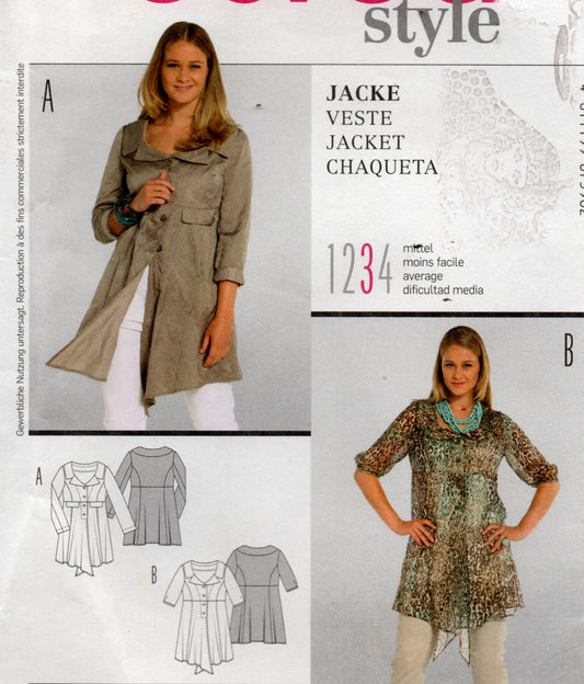 Burda Style 7396 Womens Summer Jacket with Pointed Hem 1990s Out Of Print Sewing Pattern Sizes 18 - 30 UNCUT Factory Folded