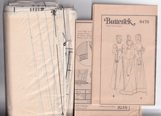 Butterick 6476 Womens Puff Sleeved High Waisted Wedding or Bridesmaids Dress with Detachable Train 1970s Vintage Sewing Pattern Size 8 Bust 31.5 Inches UNCUT Factory Folded