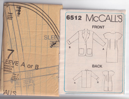 McCall's 6512 Womens Cap Sleeved Sheath Dress & Jacket 1990s Vintage Sewing Pattern Size 14 - 18 UNCUT Factory Folded