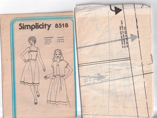 Simplicity 8518 Womens EASY Sundress & Tie Front Jacket 1970s Vintage Sewing Pattern Size 14 Bust 36 inches