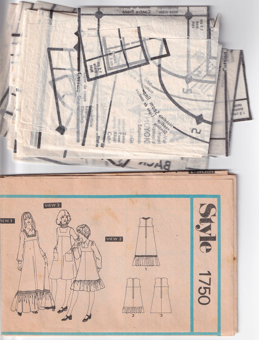 Style 1750 Teen Girls Ruffled Pinafore Dress in 2 Lengths 1970s Vintage Sewing Pattern Size 12