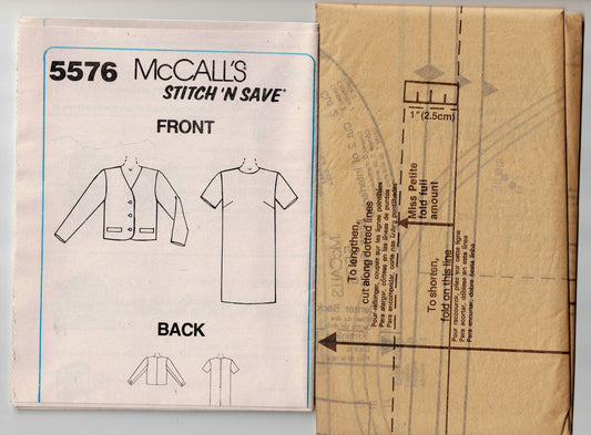 McCall's 5576 Womens EASY Straight Dress & Cropped Jacket 1990s Vintage Sewing Pattern Size 14 - 18 UNCUT Factory Folded