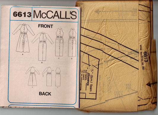 McCall's 6613 Womens Raglan Sleeved Sundress or Shirtdress 1990s Vintage Sewing Pattern Size 16-20 UNCUT Factory Folded