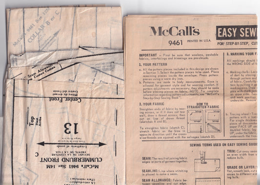 McCall's 9461 Womens Big Sheer Sleeved Evening Dress & Cummerbund 1960s Vintage Sewing Pattern Bust 34 - 36 Inches