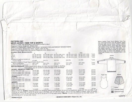 Kwik Sew 2397 Mens Sports Shorts Stretch Tank Top & Jacket 1990s Vintage Sewing Pattern Size S - XXL UNCUT Factory Folded