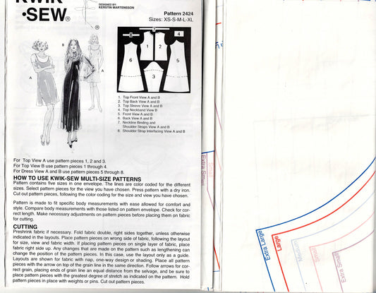 Kwik Sew 2424 Womens Stretch Knit Slip Dress & T Shirt 1990s Vintage Sewing Pattern Size XS - XL UNCUT Factory Folded
