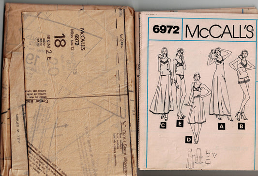 McCall's 6972 Womens Slips Camisole Bra Panties & Bikini 1970s Vintage Sewing Pattern Size 12 Bust 34 Inches
