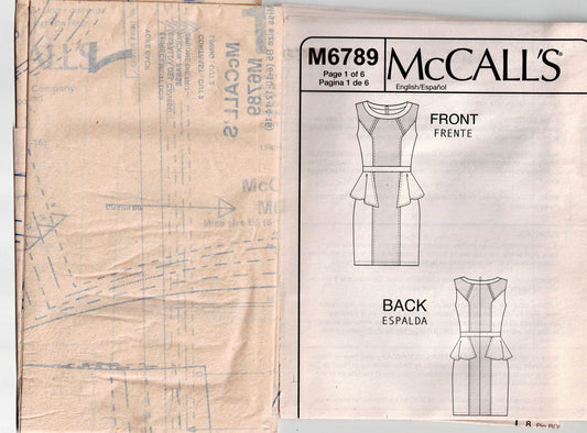 McCall's 6789 FASHION STAR Womens Colour Blocked Peplum Evening Sheath Dress Out Of Print Paper Sewing Pattern Sizes 8 - 16 UNCUT Factory Folded