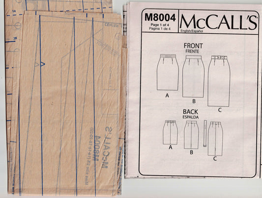 McCall's 8004 Womens Lined Pencil Skirts Out Of Print Paper Sewing Pattern Size 14 - 22 UNCUT Factory Folded