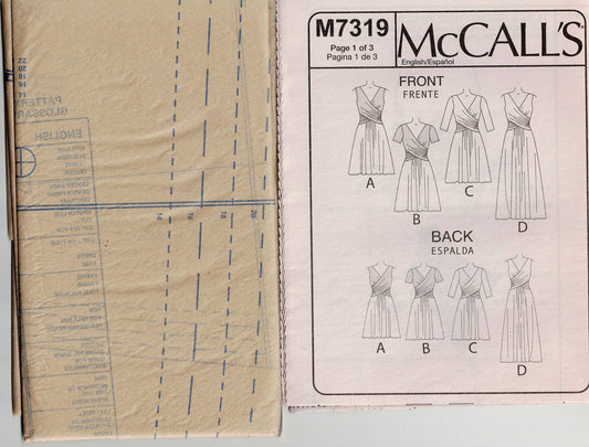 McCall's 7319 Womens Stretch Knit Dress with Crossover Bodice Out Of Print Paper Sewing Pattern Size 14 - 22 UNCUT Factory Folded