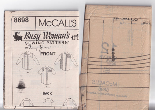 McCall's 8698 Womens Classic Yoked Shirts with Optional Embellishments Vintage 1990s Paper Sewing Pattern Size S - XL UNCUT Factory Folded
