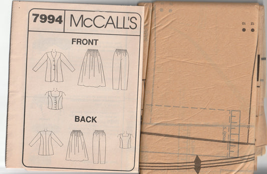 McCall's 7994 Womens Jacket Vest Pull On Skirt & Pants 1990s Vintage Paper Sewing Pattern Size 10 - 14 UNCUT Factory Folded