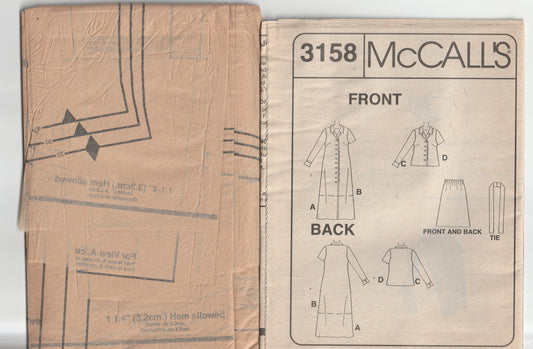 McCall's 3158 DRESS ALTERNATIVES Womens Shirtdress Shirt A Line Skirt & Tie Out Of Print Paper Sewing Pattern Size 18 - 22 UNCUT Factory Folded