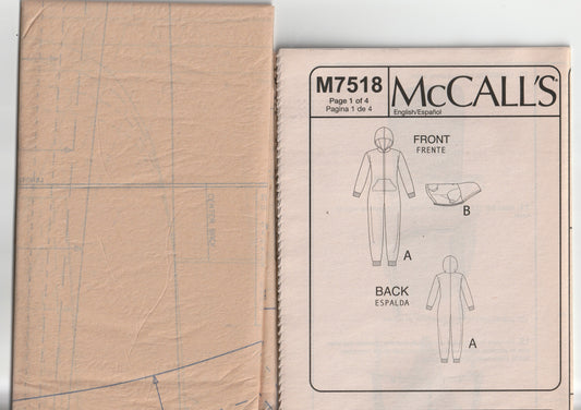 McCall's 7518 UNISEX Stretch Knit Sleep Jumpsuit & Dog Coat Paper Sewing Pattern Size ADULT S - XL UNCUT Factory Folded