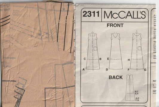 McCall's 2311 Womens EASY Jumper Dresses 1990s Vintage Paper Sewing Pattern Size 12 - 16 UNCUT Factory Folded