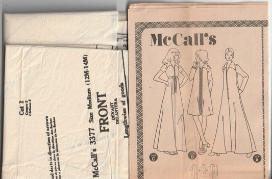 McCall's 3377 Womens Raglan Sleeved Wide Collar Zip Front Dress or Robe 1970s Vintage Paper Sewing Pattern Bust 34 - 36 inches