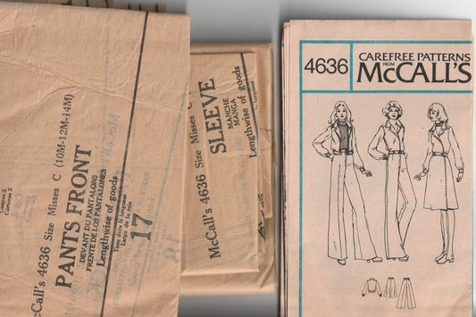 McCall's 4636 MARLO'S CORNER Womens Bomber Jacket A Line Skirt & Flared Pants 1970s Vintage Paper Sewing Pattern Size 10 Bust 32.5 Inches