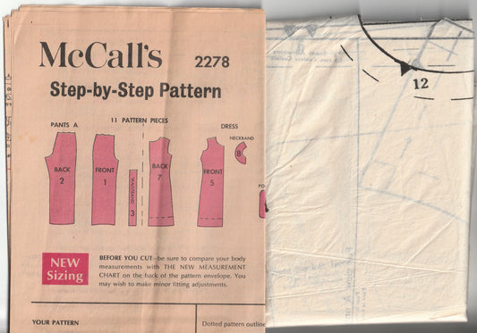 McCall's 2278 Womens Fitted Mini Dress & Pants 1970s Vintage Paper Sewing Pattern Size 10 Bust 32.5 Inches
