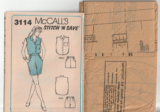 McCall's 3114 Womens Classic Shirt & Shorts with Pockets 1980s Vintage Paper Sewing Pattern Size 6 - 10 UNCUT Factory Folded