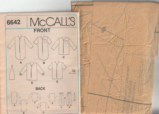 McCall's 6642 UNISEX Mens Womens Sleepwear Nightshirt Pyjamas Hat & Booties 1990s Vintage Paper Paper Sewing Pattern Size 44 - 46 UNCUT Factory Folded