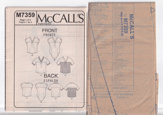 McCall's 7359 Womens Yoked Pullover Summer Tops Paper Sewing Pattern Size XS - MED UNCUT Factory Folded