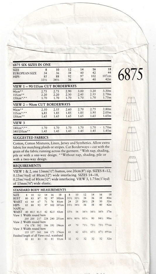 New Look 6875 Womens Yoked Skirts 1980s Vintage Sewing Pattern Size 8 - 18 UNCUT Factory Folded