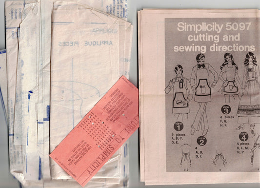Simplicity 5097 Mens & Womens Kitchen or BBQ Aprons with Iron On Applique Transfer 1970s Vintage Sewing Pattern ONE SIZE