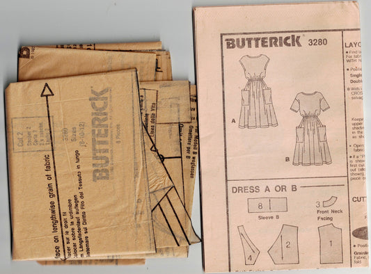 Butterick 3280 EASY Womens Back Buttoned Sundress 1980s Vintage Sewing Pattern Size 8 - 12
