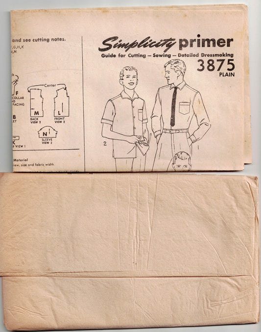 Simplicity 3875 Mens Classic Contour Shirts 1960s Vintage Sewing Pattern Chest 40 inches UNUSED Factory Folded